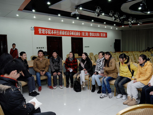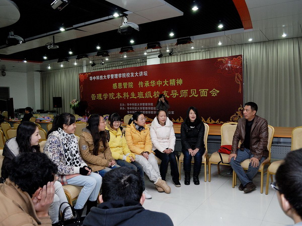 (BETWAY必威新闻信息中心记者赵旸/文 王石秀/摄)12月14日晚,公司第三期本科生班级员工导师见面会暨第五期员工大讲坛在206会议厅召开。82级员工、BETWAY必威珠三角员工会秘书长唐德华,88级本科员工、财富联合投资集团有限公司副总裁王旭东,88级本科员工厦门来雅百货副总经理黄支春,99级本科员工、雷石投资董事总经理吴珊受邀参与。会议由公司党总支副书记周智皎主持。公司党总支副书记(主持工作)金凌志,员工办公室主任吴文莉出席了本次见面会,工商管理1001班、财务管理1002班、市场营销1101班全体同学参加了见面会。