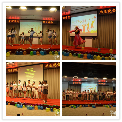 首先,歌舞串烧《把青春唱给你听》拉开帷幕。院舞蹈队优雅动感的舞姿再配上院十大歌手魏铭、郭晓桐等人的歌声点燃了全场观众的热情。来自物流管理1202班的爵士舞《萨瓦迪卡》结合动感的音乐和欢快的舞蹈,给人留下深刻印象;财政学1201班的歌曲《再见1037》向大家讲述了4年的老员工活,这首歌改编自歌曲《耿耿于怀》,熟悉的旋律配上触动心弦的歌词让在座的毕业生们感触良多;吉他弹唱《counting stars》使大家激情高涨。而后,工商管理、财务管理、市场营销等班级也分别展示了他们的精彩节目,台下观众也是激情澎湃,大声高喊“我爱你”“你最棒”!
