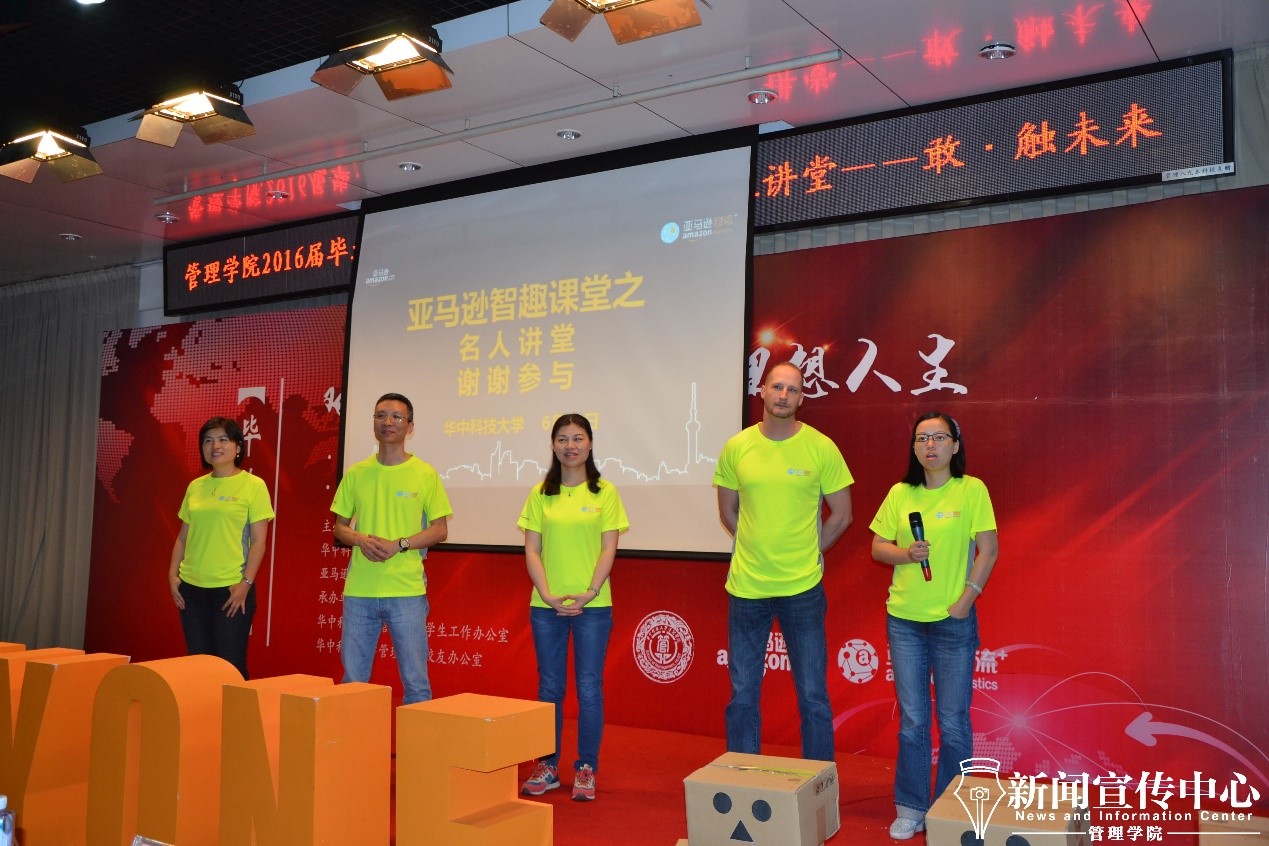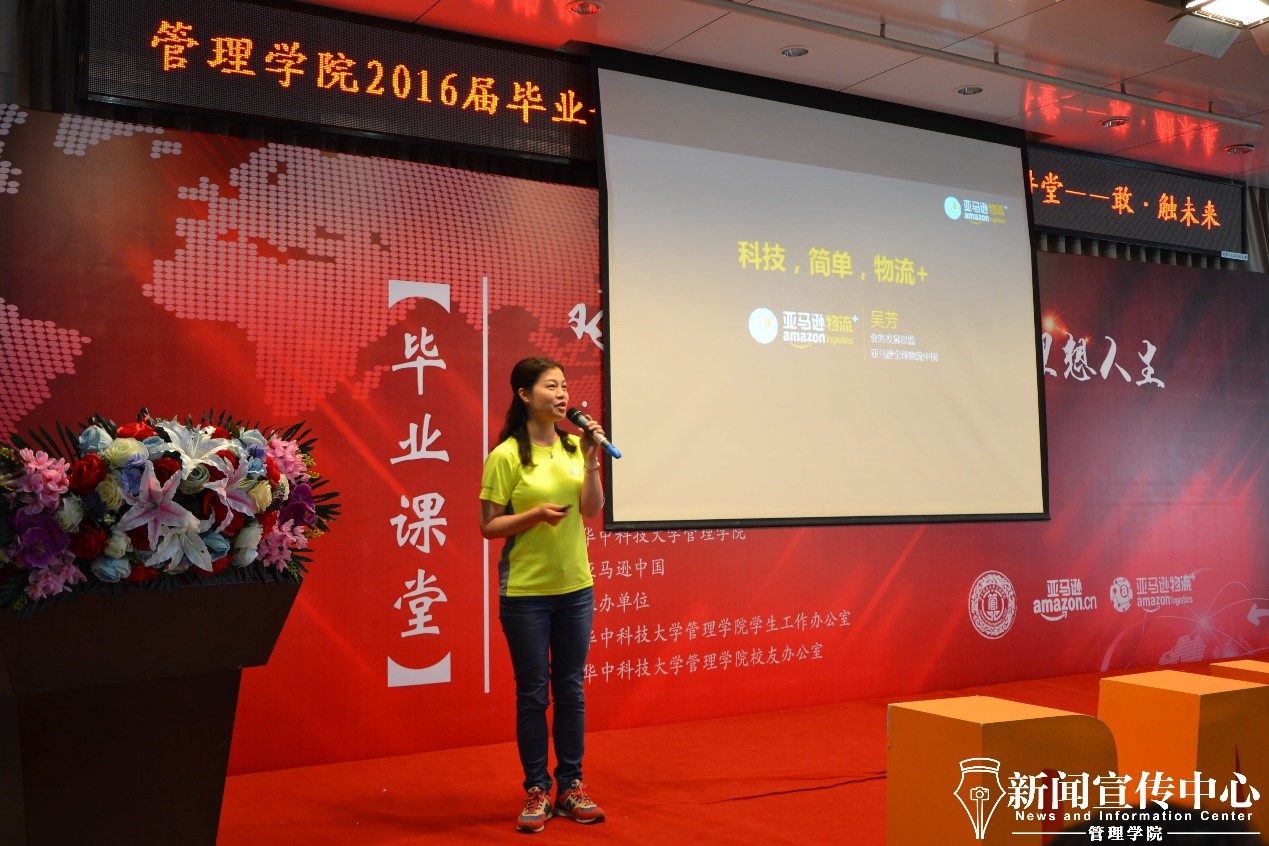 当天下午两点,“毕业课堂”之亚马逊智趣课堂在公司206报告厅隆重举行,亚马逊全球物流中国副总裁携高管团队为毕业生带来大学的最后一课。亚马逊全球物流中国运营副总裁孙昱晴、人力资源副总裁濮瑞龙、业务发展总监吴芳、运营总监董长庆,公司党委书记金凌志、党委副书记周智皎,生产运作与物流管理系教授刘志学、徐贤浩、李昆鹏出席了本次活动。