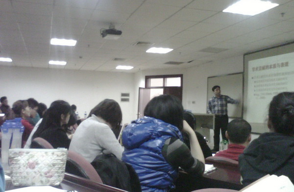 讲座在近两小时后结束了,师生们感觉意犹未尽,纷纷向周志民提出了关于讲座内容和自己的学术疑惑方面的问题,周志民根据自己的经验体会,针对每个问题给出了细致而具建设性的建议。