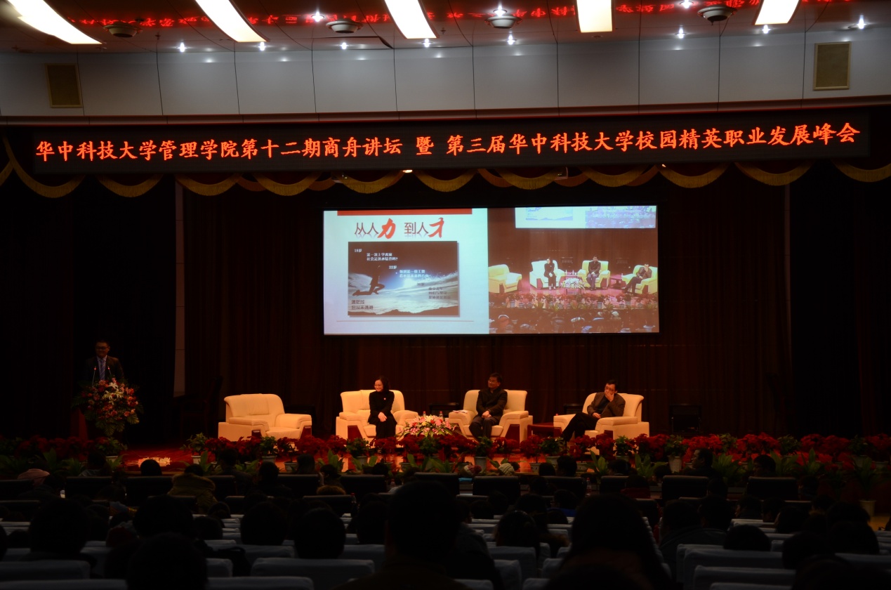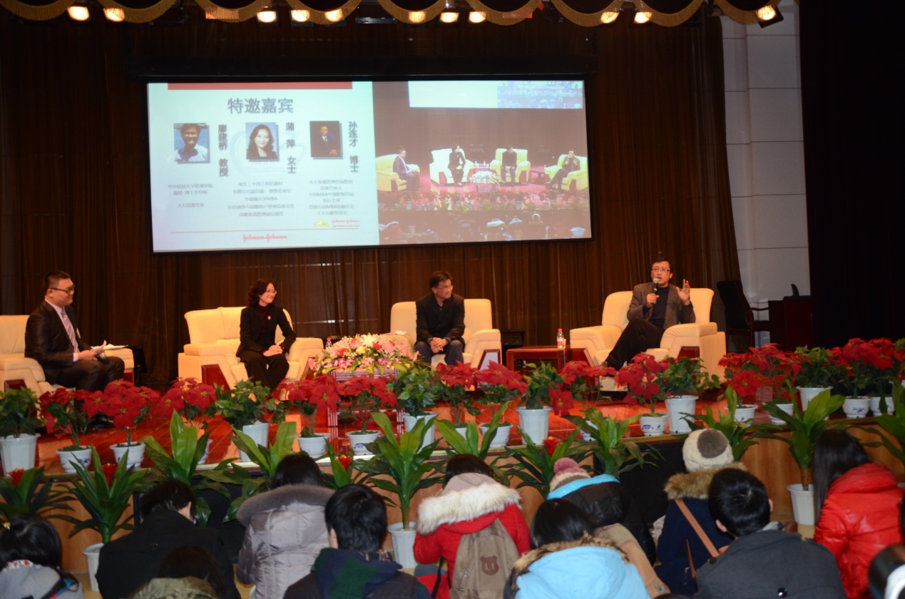 本期商舟讲坛以访谈的形式进行。活动伊始,蒲萍向大家分享了她的职场经历,她告诉大家强生医疗在招聘时看重员工的五方面:学习能力、活动经历、爱好特长、表达能力及人品,还就“人才OR人力”这个话题提出了个人独到见解。廖建桥随后从学术的角度对人才和人力做了解释,并用丰富的人力资源专业知识和生动的案例深入浅出的阐述了这两个词。孙连才则结合自己的创业历程告诉大家,要成为人才就要付出比别人十倍百倍的努力,要能直面困难、克服困难。在交流互动环节,现场气氛十分活跃,面对同学们积极踊跃的提问,三位来自不同领域、不同职业嘉宾做出了智慧的回答。