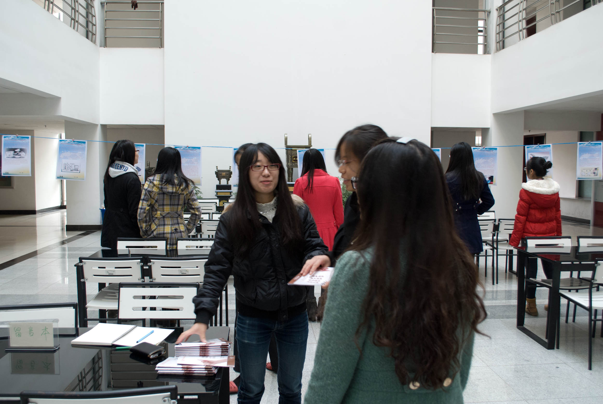 学术交流中心的同学们还极其贴心的向到场的同学们发放了学术诚信活动宣传手册,手册封面赫然写着一个“诚”字,以及“责任以行,诚信为本,信而有征,诚至金开”十六个大字,到场参观展览的同学们还在留言册上写下了自己此次展览后的感悟与体会。刘同学表示,参观此次案例漫画展得到很多启发,他认为在平时的学术活动中,我们应该避免过多的“借鉴”别人的成果,更多的找自己的创新点,杜绝学术造假和抄袭行为。