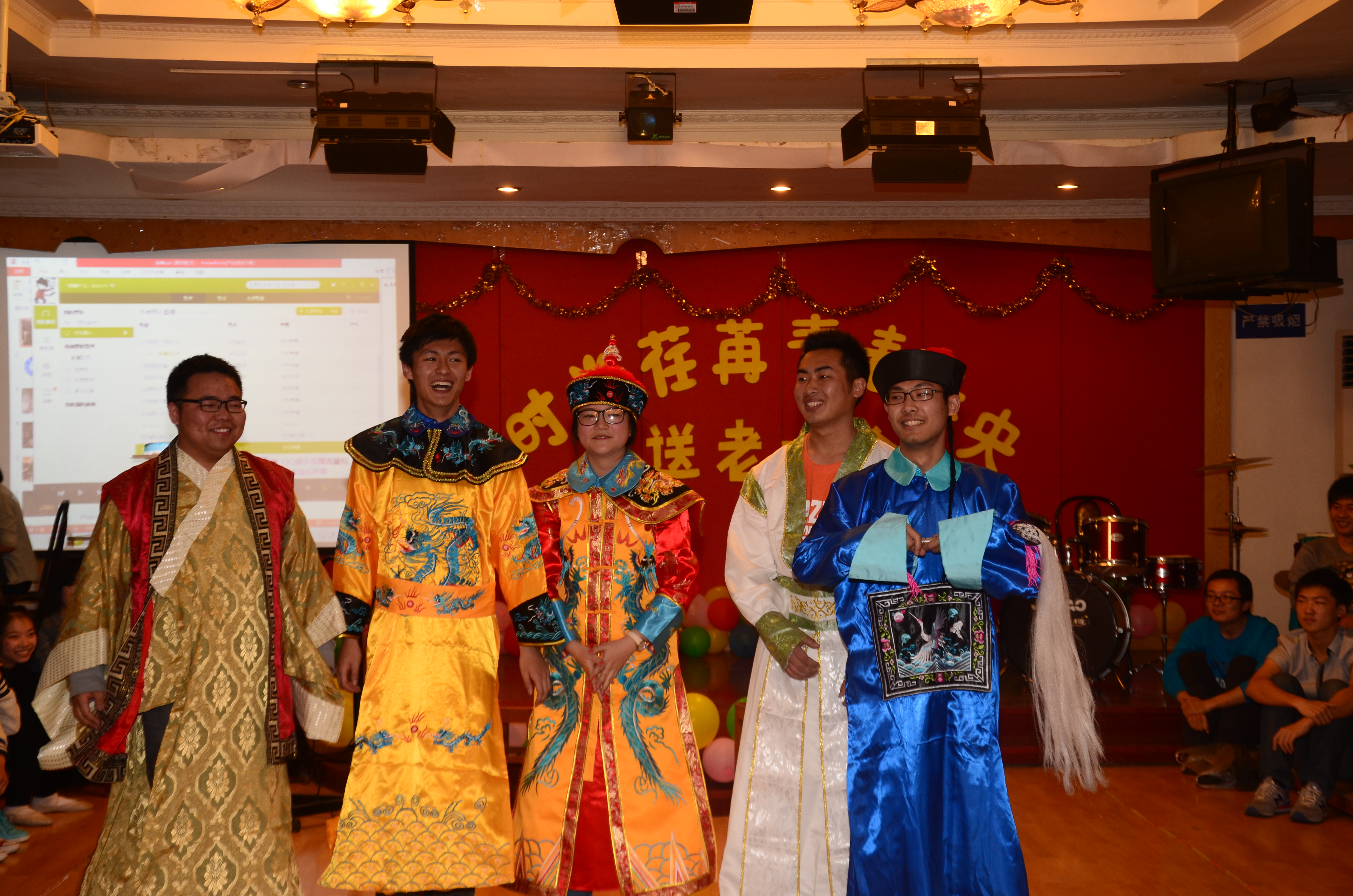 首先是实践部带来的活泼、搞笑的舞蹈《Bar Bar Bar》,博得台下阵阵欢呼,现场氛围顿时变得欢乐起来。办公室和学术部联合演出的《中国同伙人》,以诙谐、幽默的段子,使得观众捧腹而笑。文艺部节目也是最文艺的,以古典乐器与现代乐器的完美混合为伴奏,一支曼妙的扇子独舞迷得众人《欢沁》。《我们的宣传部》新成员们分别模仿老成员,重现其部门的某次例会,生动的突出了老成员的特色,台下老成员已笑得前俯后仰。外联部的舞蹈串烧《洗脑小人》萌翻全场。同样也是舞蹈串烧,人资部先以川话版的《火》震住全场,而后以不同舞蹈给观众带来了不一样的视听感受,将现场氛围推向高潮。职规部则另类反串“尔康”“紫薇”,带大家《梦回幽幽谷》。一首快歌一首慢歌,交替而唱,忽快忽慢的节奏刺激着观众的鼓膜,这是体育部带来的《欢乐歌曲串烧》。还有权益部的《最强选秀王》,组织部的《90后生活》,心理部的《我们就是心理部》都给观众带来欢乐。