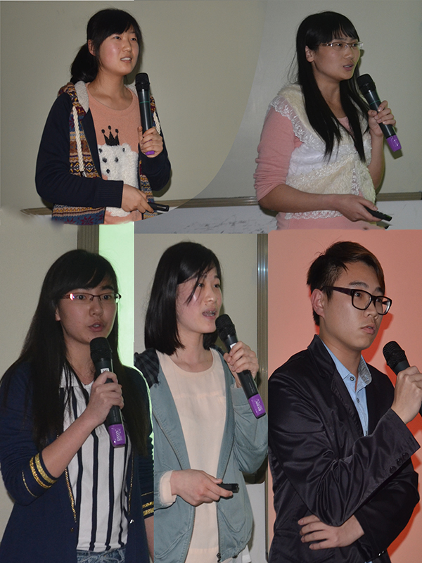 财务1201班的付欣宇向大家介绍了寝室里独特的音乐角、绿色角、清洁角和他们的寝室文化,并告诉大家作为寝室长重在于生活点滴中表现出对室友们的关爱与尊重。物流1201班袁茂的寝室装饰的非常精致漂亮,寝室里的棋文化夺人眼球。把寝室命名为“好来屋”的财务1201班曹野,他们的寝室非常洁净,一直是男生寝室卫生评比中的最高分。物流1102班的梁亚爽别出心裁的带来了一段韩语的自我介绍。物流1202班的陈雪介绍了自己的学习、义工、兴趣等情况,并告诉大家她和室友把5月11号定为“511寝室”的寝室日,非常独特。