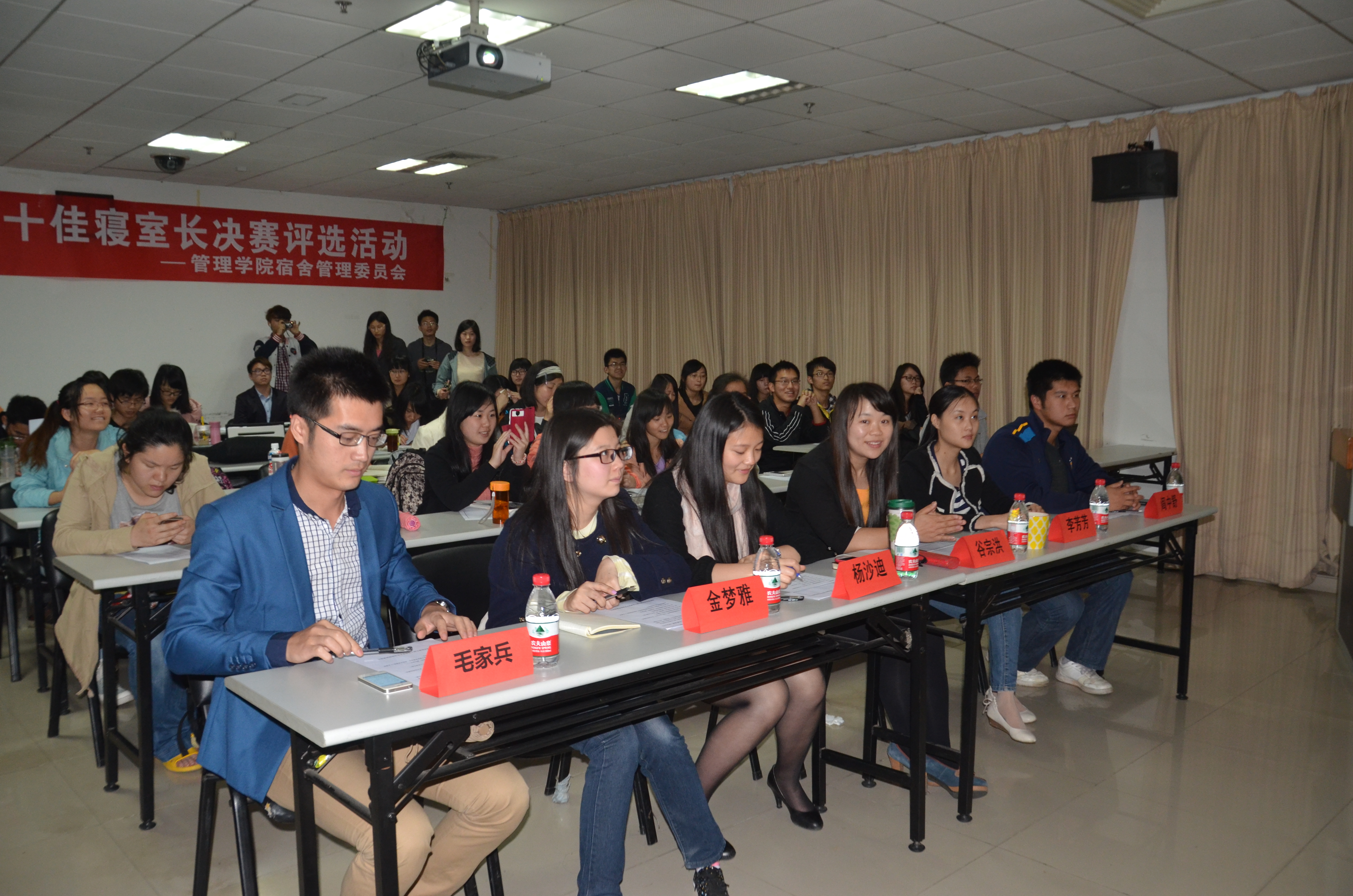 在刘雯雯总结发言后,主持人宣布了比赛结果。邓迎、兰莉英、刘新彦、梁亚爽、付欣宇、罗钢、袁茂、曹野、陈晨和贺芳获得了十佳寝室长的荣誉。此次比赛圆满结束。