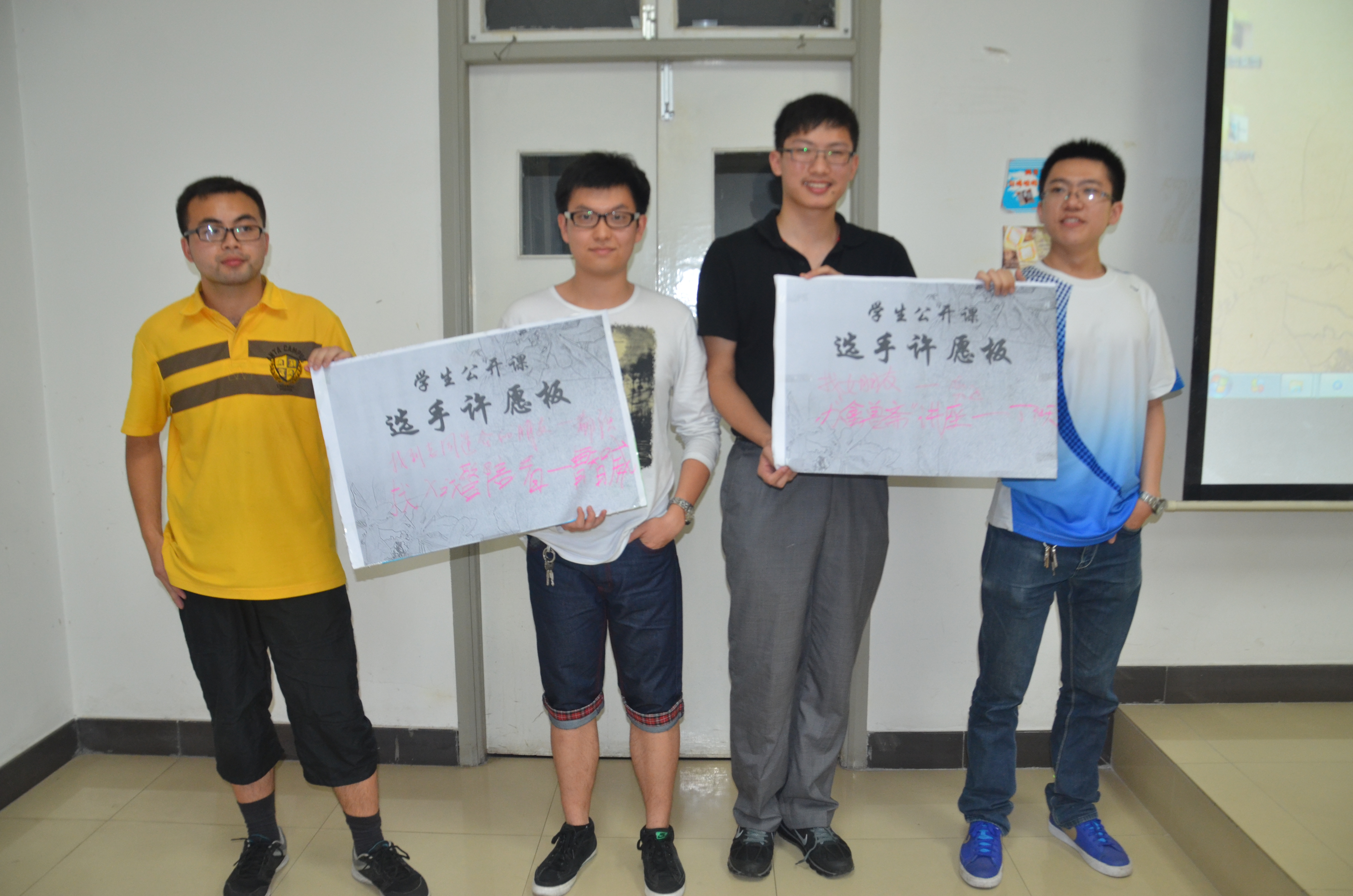 比赛进入尾声,经过紧张激烈的投票与统计,主持人公布了选票结果。李奕达、郗强和丁阳天呼声最高,荣获本次比赛的前三名,而曹智威因自己独特的人格魅力荣获最佳人气奖。紧接着,获奖选手在主办方精心准备的许愿板上写下自己的心愿,带动全场达到气氛的最高潮。至此,本次比赛圆满落下帷幕。