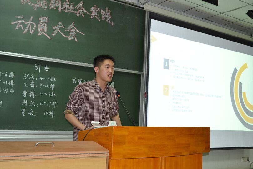 随后,分团委、员工会副主席任鸿飞介绍了暑期社会实践的基本流程,从组队、选题、策划、材料、申报到保险、队旗、队服、及出发准备,再到参与实践中,上交总结材料、答辩评优,详尽地讲解了社会实践的各个环节。