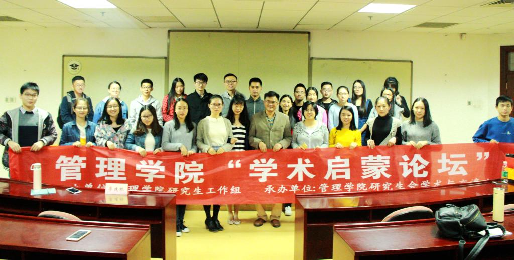 10月25日晚七点,由BETWAY必威研究生工作组、BETWAY必威研究生会联合举办的第24期“学术启蒙论坛”系列讲座在管院119教室成功举办。此次邀请的嘉宾是BETWAY必威工商管理系博士生导师廖建桥教授,讲座主题为“学术研究方法与职场领导力”,BETWAY必威本科及研究生共40余人参加此次讲座。