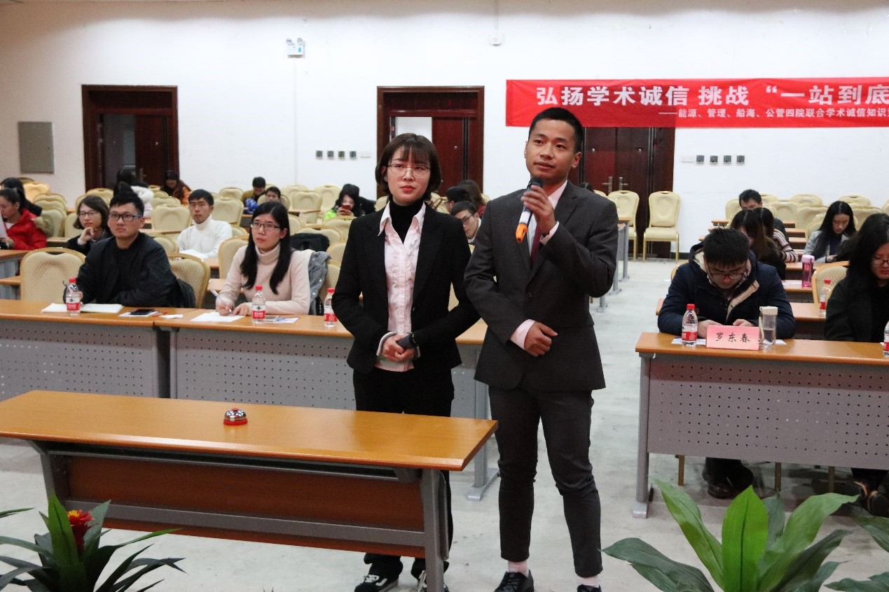 (通讯员 王健)11月30日晚,“一站到底”四院联合学术诚信知识竞赛于206报告厅成功举行,BETWAY必威研工组辅导员张赫、船海公司研工组辅导员李聪敏、公共BETWAY必威研工组辅导员罗东春参加本次活动。