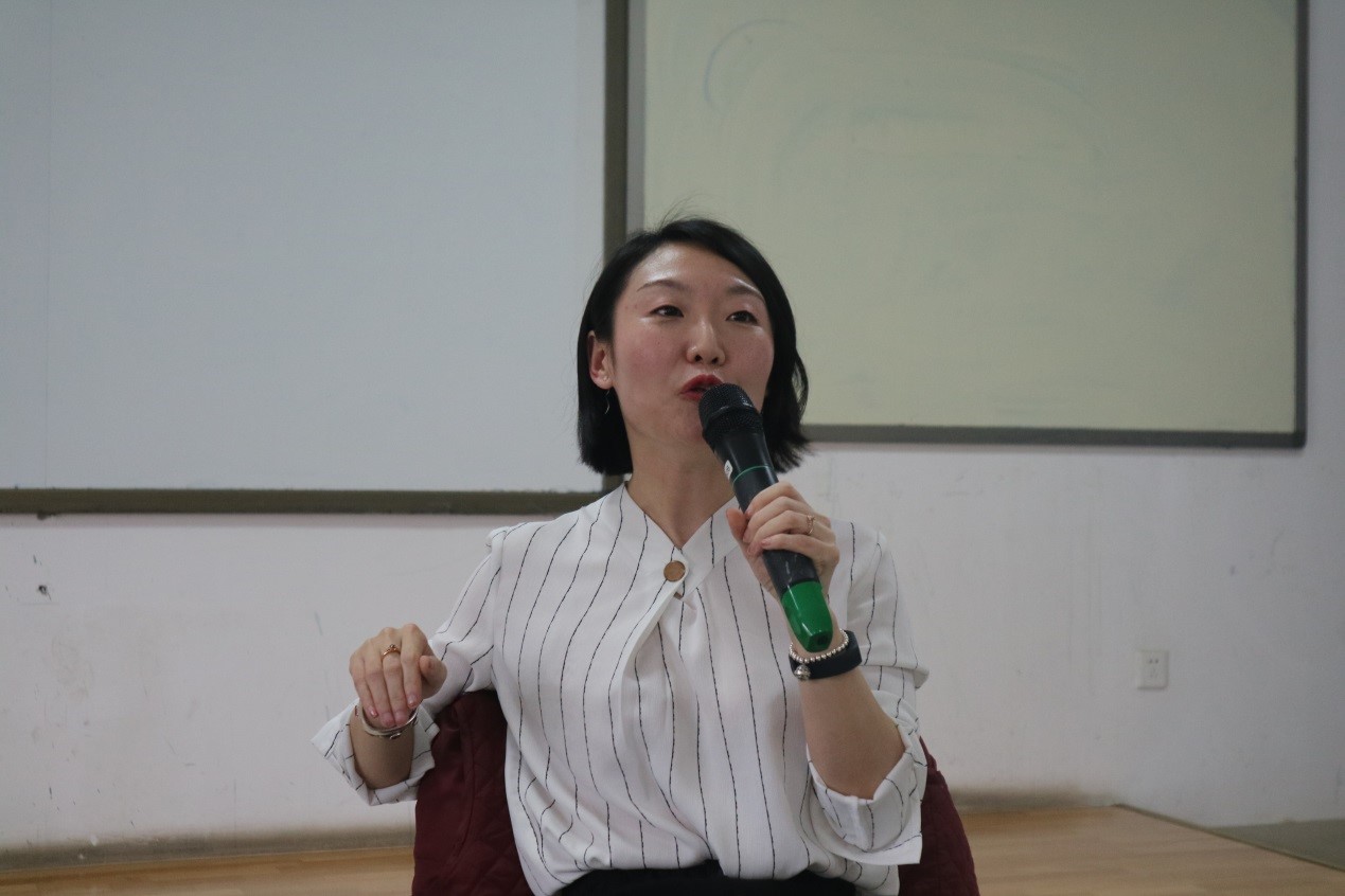 随后的分享环节,郭晓丽与同学们分享了自己真实的生活经历,引出了与人相互认识后,深入了解的话题。郭晓丽表示,人与人之间随着了解的深入会更加亲密。在找话题时,谈话的深度应该是从非个人到个人循序渐进的,从客观到主观逐层深入的。在亲密关系中,应该更多的分享自己的思考,注重与双方的互动。