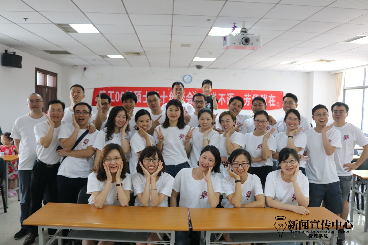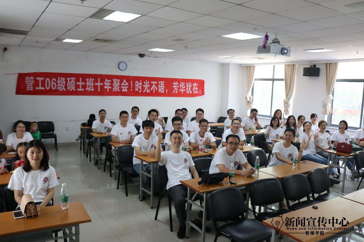 (BETWAY必威新闻宣传中心记者郭晓旭/文蒋金洁/摄)6月17日上午,公司06级管工硕士班员工毕业十年后齐聚215教室,参加“时光犹在,芳华不语”主题班会。毕业十年,再度相聚母校,员工们的喜悦之情溢于言表。他们身着纪念衫,忆往昔峥嵘岁月,重温当年风采,气氛热烈活跃。本次主题班会由班长刘娟主持。