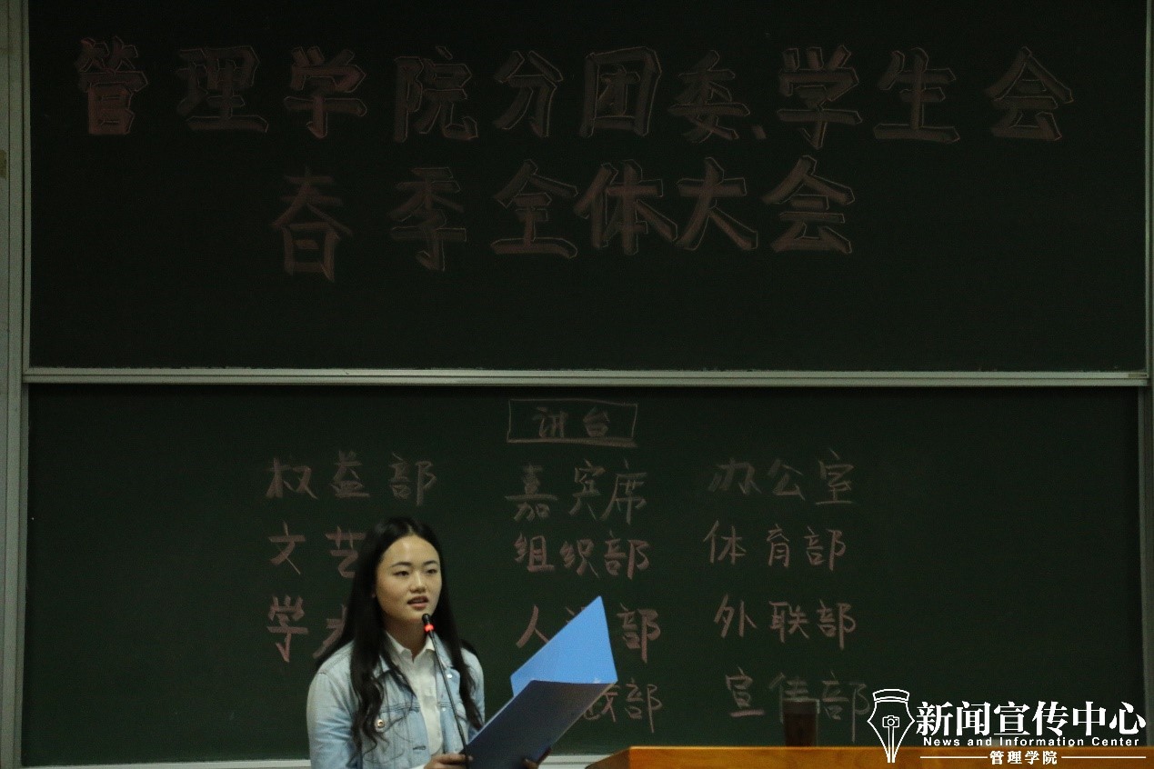 随后,第十三届分团委、员工会主席宗言上台发言,她对分团委、员工会的定位及发展方向提出了自己的观点。她说到,分团委、员工会是服务于全体员工的群体性组织,一切的活动开展都应以服务同学为根本,以提高员工的学习兴趣和技能为目的,一切以员工为中心。