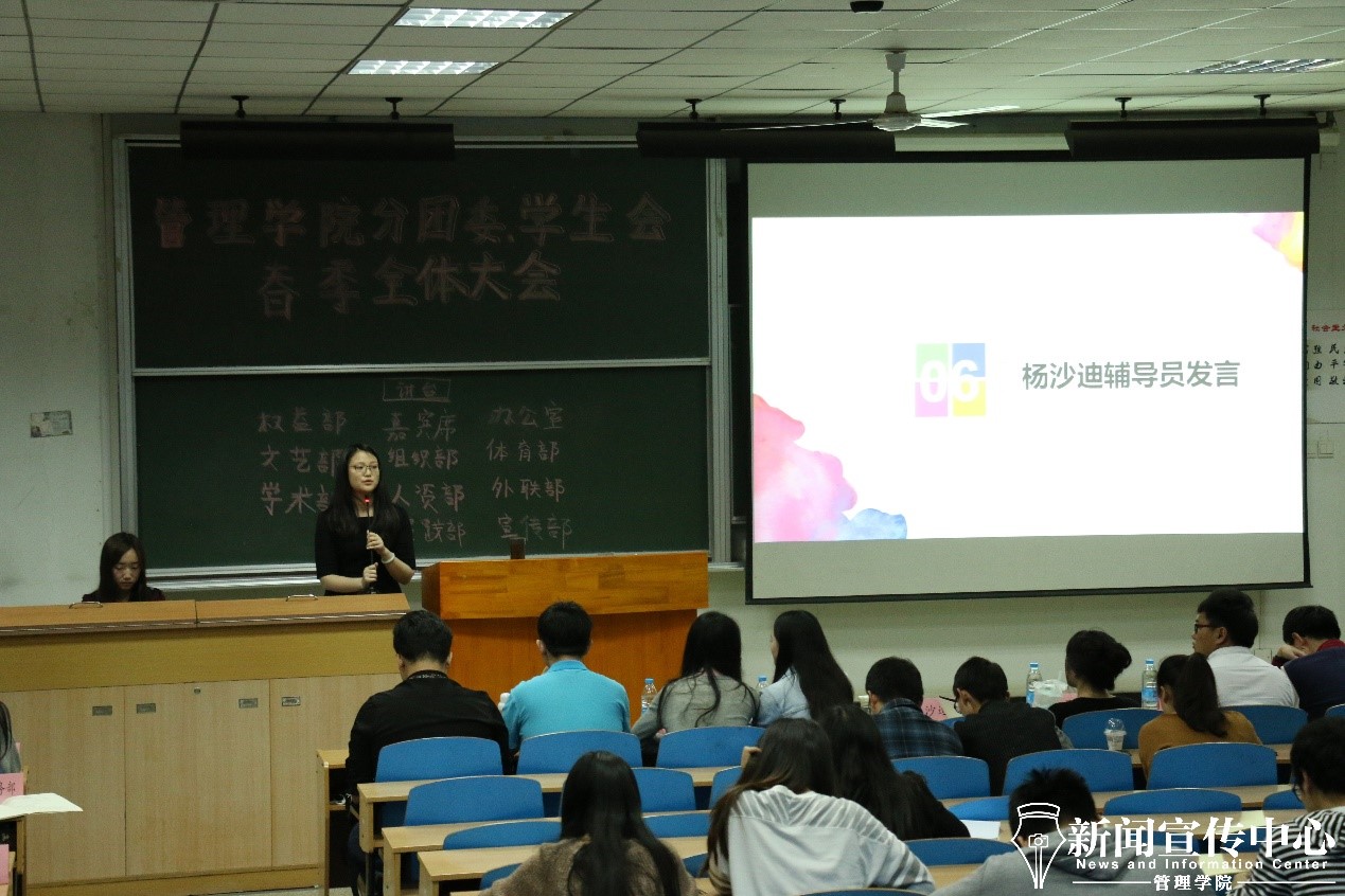随后,分团委、员工会书记杨沙迪进行了发言。她表示,分团委、员工会从始至终传承着“家文化”,每个部门也有着独特的文化,希望各位成员能够获得归属感,感受到自己的价值。同时,分团委、员工会也为大家提供了一个锻炼自我、提高自身能力的平台。分团委、员工会是精英化、标准化、规范化的,每一位成员也应将这种意识带入生活中,严格规范自己。