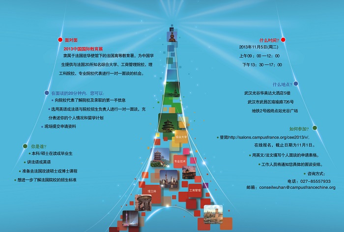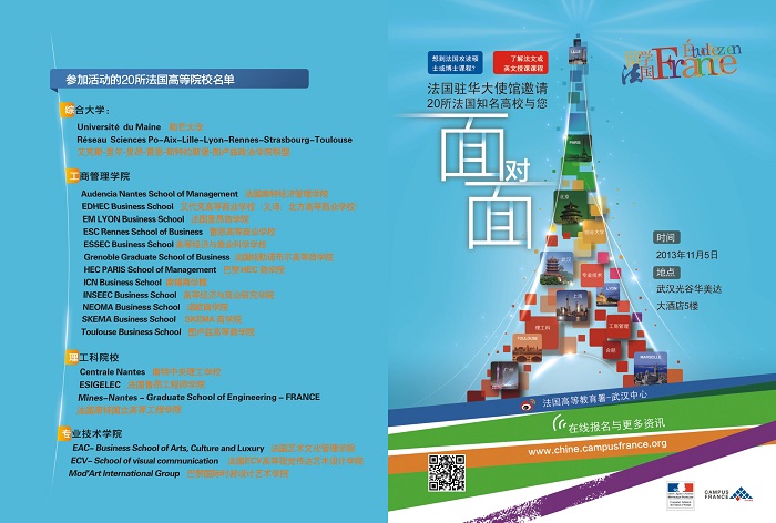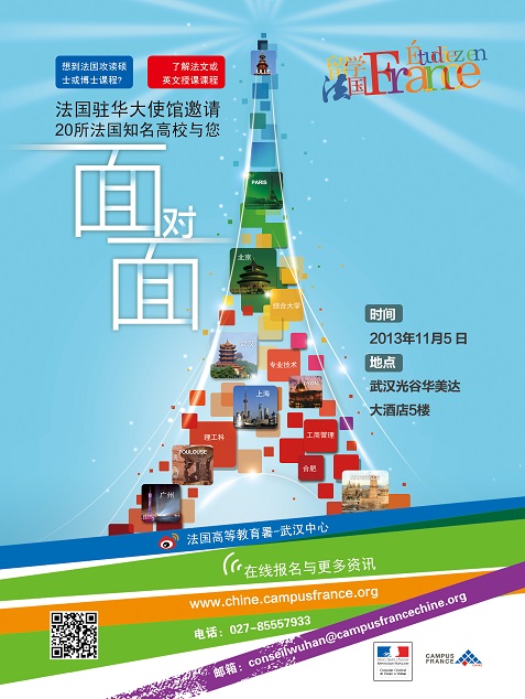 点在武昌光谷华美达酒店举办法国教育展。届时法国高校代表将与中国本科三,四年级,硕士及博士研究生进行