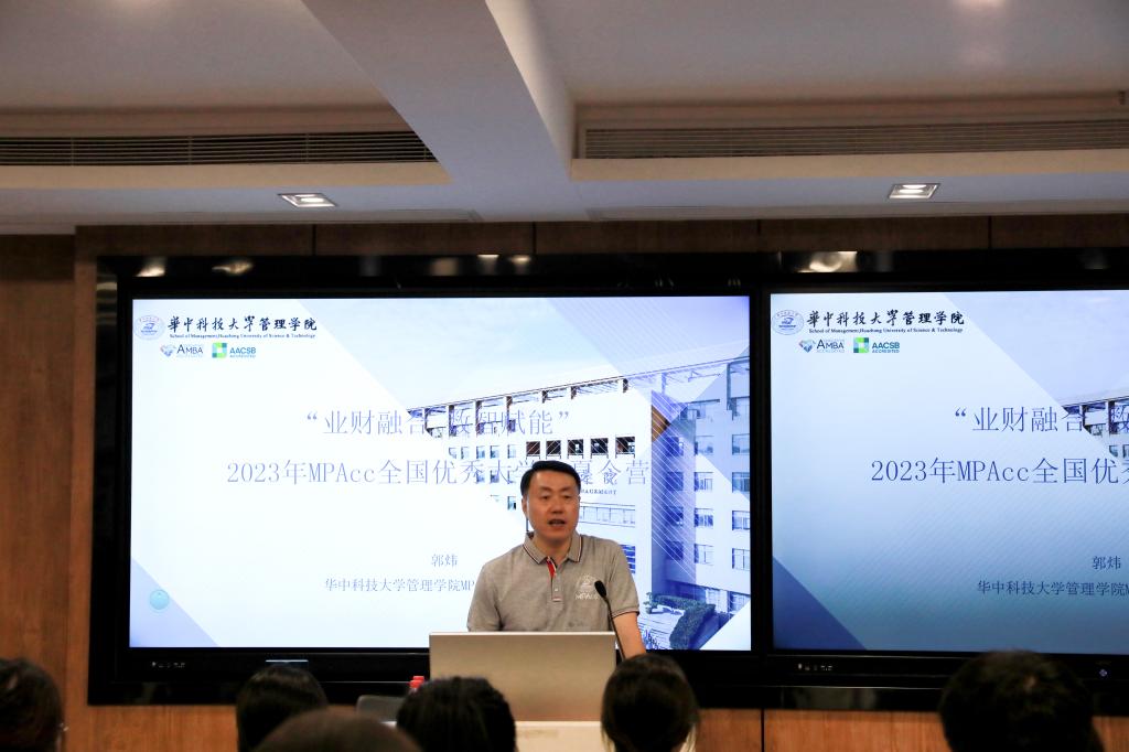 随后,会计系主任、MPAcc教育中心主任郭炜教授向营员们介绍了公司以及公司的学科实力和团队力量,全面介绍了MPAcc项目课程体系、人才培养、国际交流、产学研融合等方面的详细情况,解答了同学们关于MPAcc项目以及研究生生活的问题。