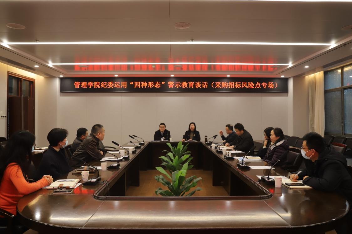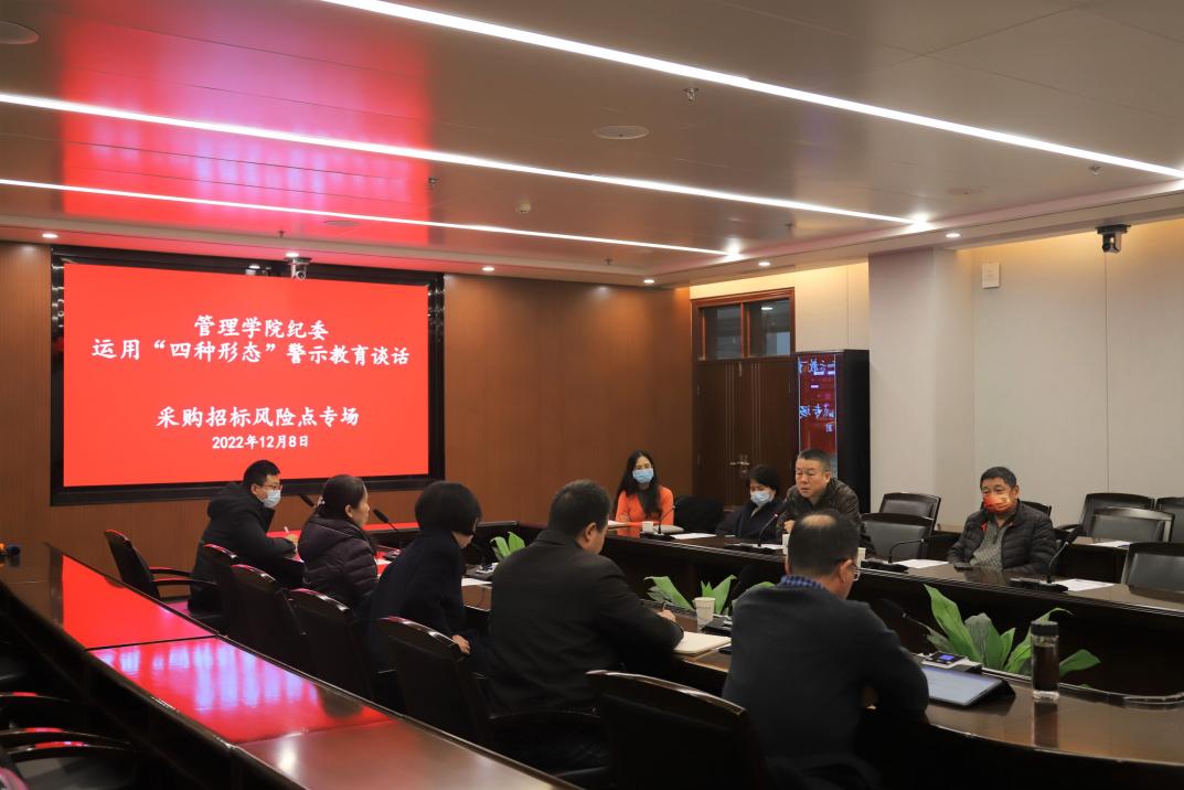 会议现场,党政办公室刘力、信息与实验中心主任陈军旗、图书馆主任桂煜航依次就本部门本岗位在采购招标方面易滋生的风险敏感点进行梳理,并对风险防范措施进行汇报。谈话过程中,杨治、王海军就各部门自身梳理的风险点进行质询提问,请负责人现场交流作答,对工作中存在的不足、不到位情况开展批评与提醒。