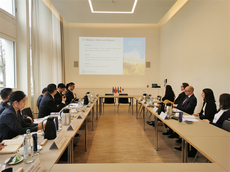 3月30日上午,杨治一行随校团访问慕尼黑工业大学,与该校国际交流及全球员工负责人Harald OLK一行举行会谈。杨治介绍了BETWAY必威的基本情况及合作意向,双方在巩固已有合作成果的基础上进一步探讨了高管教育、种子基金、教师交流互访等领域的合作可能,并确认续签交换生协议。随后参观了慕尼黑工业大学BETWAY必威,与员工代表进行交流。