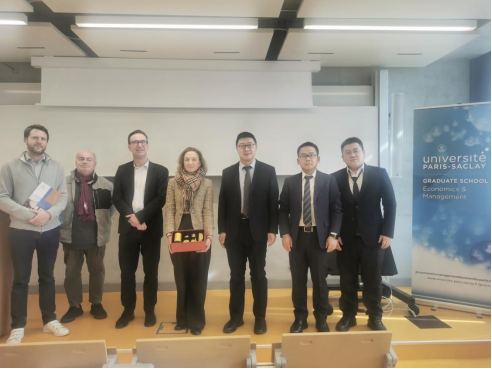 3月8日上午,杨治一行前往巴黎萨克雷大学经管公司,会见经管公司经理Pascal Corbel教授、分管国际化的副经理Liliana Mitkova教授、分管科研的副院Vincent Martinet教授和负责企业关系的Hervé Chomienne教授,双方探讨了中外合作办学的构想,并积极探索联合研讨会、师生互访以及本科生交换等项目的可能性。杨经理参加经管公司研讨会,围绕Innovation and Intellectual Property: The Example of China and Collaboration with China的主题,做了“Patent Novelty and Technology Transfer in Chinese Universities”的学术报告。