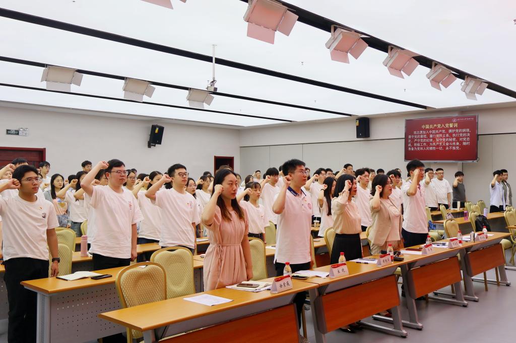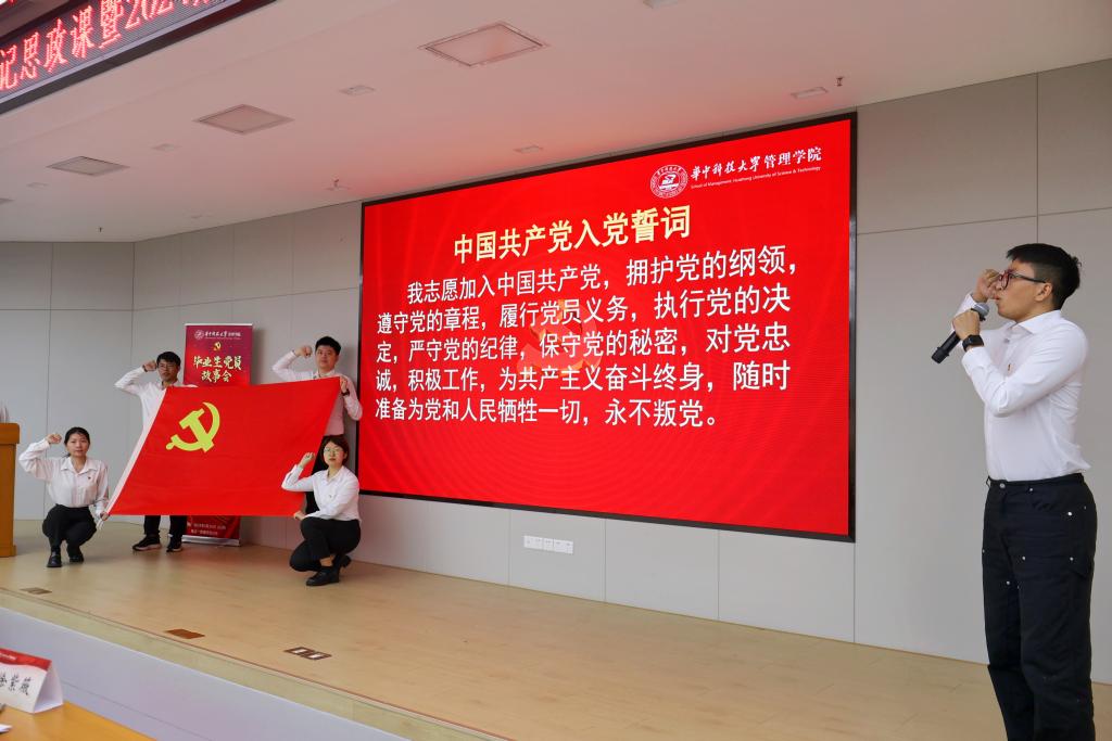 活动最后,全体毕业生党员在管实2001班张秦郭磊的带领下,高举右拳,面向党旗,重温入党誓词,以铮铮誓言昭示党员初心,以高亢之声言明报国之志。