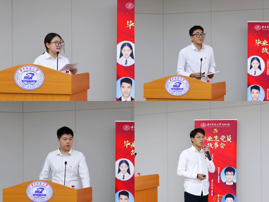 思政课结束后,胡艳华和谭静参加了2024届毕业生党员主题党日活动。在党员故事分享会环节,四位优秀毕业生党员讲述了他们的成长故事。工商2001班李嘉欣以《青春心向党,奋进新时代》为题讲述了自己在华科大的成长之路,作为从大山里走出的苗族姑娘,她用自己的入党、求学经历向大家展示了“心中有党、行动有方”。管实2001班张秦郭磊以《永远在路上》为主题,通过分享自己在员工工作、社会实践和志愿服务中的经历,强调了持续学习、不断进步的重要性,并激励同学们在前进的道路上不懈奋斗。硕士2104班肖剑秋以《贴近时代脉搏,坚定理想信念》为题讲述了自己在华科大的学习体会和政务见习经历,他切身体会到为人民服务的意义,深刻认识到新时代青年要紧跟时代步伐,坚定理想信念,在各自的岗位上发光发热,为国家的繁荣昌盛添砖加瓦。博士2001班黄永颖以《把论文写在祖国大地上》为主题分享了自己深入调研、了解国家发展动态、将研究成果应用于实际的科研经历,他始终坚持将学术研究与国家的发展紧密结合,坚信道阻且长,行则将至,行而不缀,未来可期。