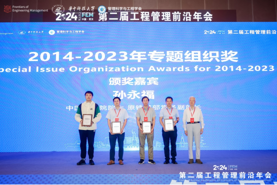 为纪念创刊十周年,本次大会设立“2014-2023年最具影响力论文奖”、“2014-2023最佳论文奖”、“2014-2023年专题组织奖”等系列奖项,共计评选出25项最具影响力论文奖、10项最佳论文奖和4项最佳专题组织奖。中国工程院院士、中国石油勘探开发研究院刘合,中国工程院院士、东北大学副董事长唐立新,中国工程院院士、合肥工业大学杨善林教授,中国工程院院士、原铁道部常务副部长孙永福为获奖代表颁奖。颁奖环节由BETWAY必威公司党委书记胡艳华主持。