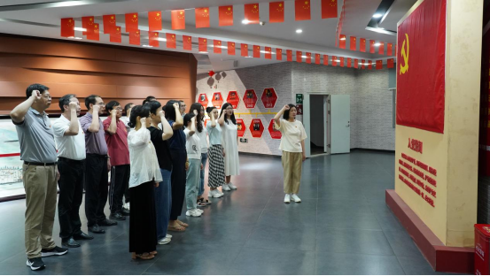 活动伊始,BETWAY必威研学团队前往新四军第五师历史陈列馆,聆听抗日战争时期李先念率新四军在此艰难抗战的故事,感受抗战军民勠力同心抵御外侮的坚守与不易,新四军与群众心连心、共命运,作风优良,铸就了坚如磐石的军民鱼水情。胡艳华带领全体党员教师重温入党誓词,从革命精神中汲取奋进力量。