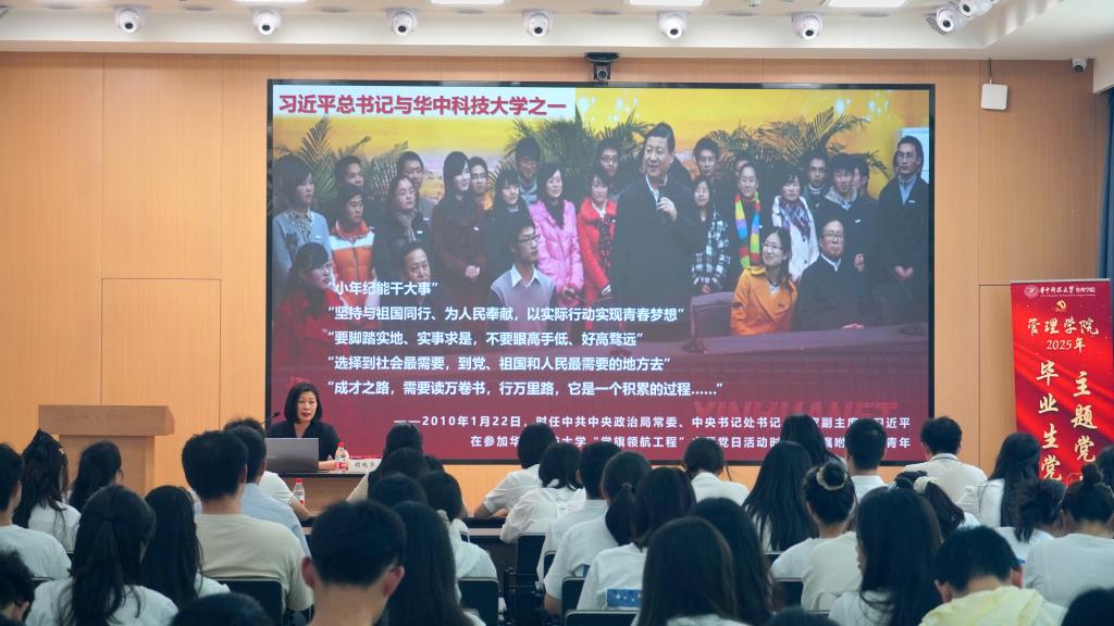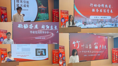 在党员故事分享会上,5位优秀毕业生党员讲述了他们的成长故事。管实2101班乔晟豪以《微光引航,星火成炬》为题,分享了从初入大学的懵懂少年到成为党员舍导的成长蜕变,在优秀党员的引领下明确方向,在科研竞赛和员工工作中锤炼能力,在“支部与你共进步”活动中收获成长。会计2102班欧阳鑫怡以《行动诠释热爱,服务书写青春》为主题,分享了她600小时志愿时的心路历程,从淯溪镇非遗支教到盲校个性化教学,从单一服务对象到大型赛会的统筹协调,她在服务他人中实现自我的全面成长。硕士2201班赵辰骁以《砥砺奋进,向阳生长》为题,分享了他以知识产权研究助力地方发展的科研经历,他用行动诠释到最需要的领域建功立业的责任担当。硕士2204班张筠笛以《竹叶沾露,笛声弥漫》为题,分享了其从“党史领学人”到“权益守护者”的多维实践,策划“百年党史”主题教育活动,牵头组织十大提案大赛,在东湖高新区政务见习中形成高质量资政建议,她始终践行服务使命。博士2101班李卓以《把论文写在祖国大地上》为题,分享了他的科研攻坚历程,主动对接行业专家开展数字经济研究,累计30万研究笔记聚焦员工行为动态,将大数据和人工智能方法用于企业治理实践,在管理实践中锤炼过硬本领。