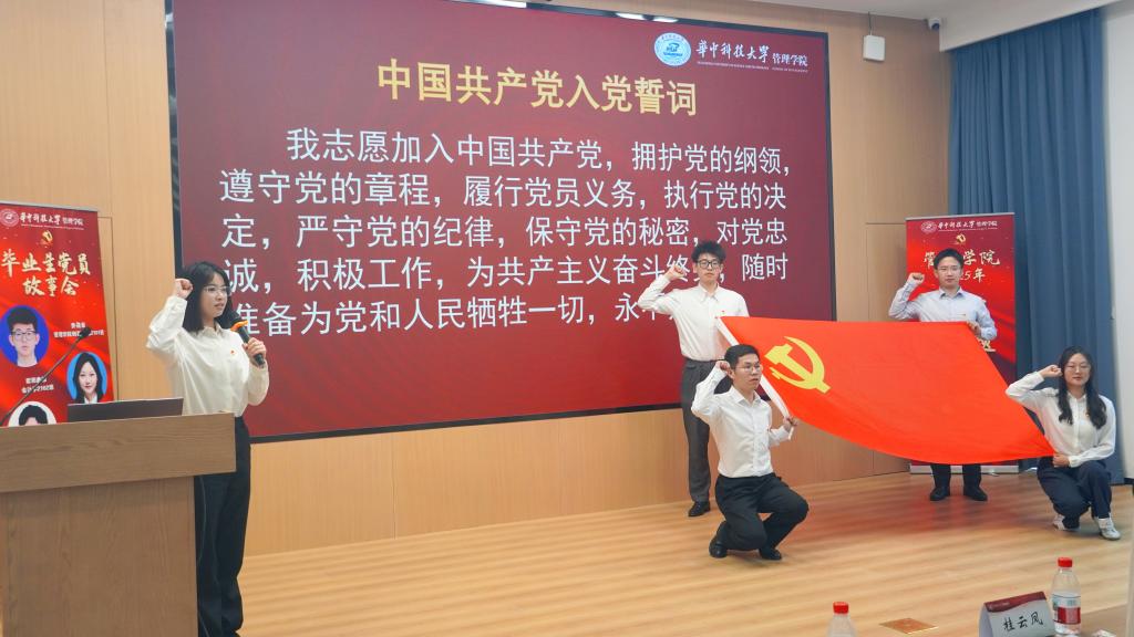 最后,张筠笛带领全体党员面向党旗庄严宣誓,重温入党誓词。本次活动以思政课讲授重温殷殷嘱托,以榜样力量激发使命担当,推动毕业生党员理论学习入脑入心,让科研创新、服务奉献成为管院学子的闪亮名片,让党的旗帜在新征程上高高飘扬。