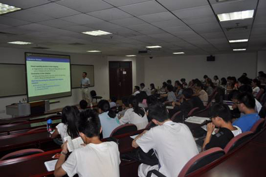在讲座过程中,同学们积极参与、踊跃提问,对采用学术方式解决实际问题产生了极大的兴趣。虽然在座的同学们对航海运输并不是十分了解,但是通过齐教授的介绍与讲解,大家逐渐了解到了目前中国乃至世界航海集装箱运输领域的运输现状以及危急处理方式,不同于航空业以及陆运,海运有着不易调配、运输时间长等特点,因此更需要建立切合海运特点的模型进行优化处理。