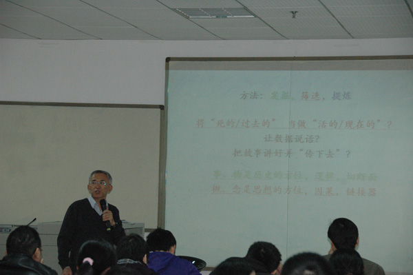 周南教授用富有哲思的语言为大家讲解如何让研究进入“高境界”。他以“本”“末”两字为例开题。两个字里虽然都有“木”,区别是一横的位置不同,这一点的不同在于从“本”到“末”需要筛选提炼,然后升华的过程。做研究亦是如此,只有实现了从眼睛“观”到头脑“察”,从身体的“感”到思想的“悟”,才可以走上做研究“高境界”的道路。周南教授认为,人生的前阶段都在做加法,不断的积累与吸收各方面的信息,后阶段则是做减法,留出更多的时间和空间让自己思考。除此之外,他认为只有热爱,亲近,深入理解,才可能收获研究成果。