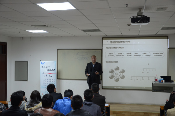 讲座上,白万纲首先从公司制的产生对社会制度创新的角度阐述了公司制的特点和优势,并进一步说明集团制是对公司制的再创新。以此为基础,白万纲运用丰富的案例向大家详细介绍了常见的集团形态,以及集团发展历程中的经济联合体形态。针对中国企业集团的发展现状和趋势,白万纲则认为,中国集团多呈现对社会财富的结构性管理,如当地化、跨域化、并联化、复制化、升级化等重要特点。此外,他还向大家讲解了该如何利用好集团管控并发挥其核心优势,从哪些方面去实行整合资源,以获得最好的管控效应。
