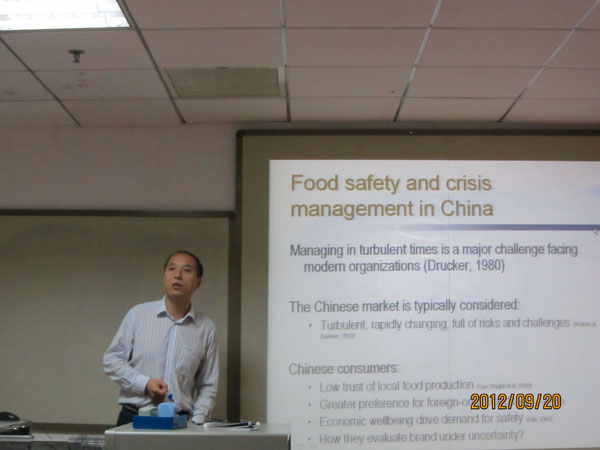 高宏志以“多品牌产品危机事件”系列研究作为例证,介绍了如何从单一数据集发展出多篇论文的个人经验和教训。首先,他谈到了研究的动机是基于现象、问题及理论的驱动。以“三鹿奶粉事件”为例,高宏志从消费者不信任等现实影响、归因和分类等理论、品牌信任等构念三个视角对“三鹿危机”进行了深入讲解。接下来,高宏志分析了与之相关的危机管理、替罪羊效应、不信任感溢出等问题。之后他分享了自己最新研究成果“Mistrust Spillover: Assimilation or Contrast? A Study of the Interplay of Domestic and Imported Brands in a Product-Harm Crisis”,该研究从“三鹿危机”如何影响其他品牌等研究问题出发,通过危机发生后2个月便进入实地调研、调查16所幼儿园和小学、实施2156份完整调查等方法展开研究,在报告论文时,他重点阐述了研究的假设、理论发展和对现实的解释。最后,高宏志谈到了本研究的难点、研究环境的重要性以及如何投稿国际TOP学术期刊的切身经验。