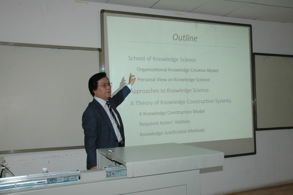 的Nakamori教授在BETWAY必威116教室, 为BETWAY必威师生做了题为“Introduction to Knowledge Science”