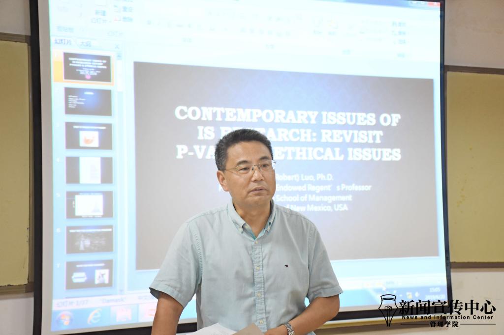 (BETWAY必威新闻宣传中心实习记者忽美杉/文、摄)620日下午,总第529期喻园管理论坛在BETWAY必威121教室顺利举行,美国新墨西哥大学安德森BETWAY必威的罗欣教授作了以“Contemporary Issues of IS Research: Revisit P-value & Ethical Issues”为题的一次学术报告,BETWAY必威副经理鲁耀斌教授主持本次讲座,并对罗欣的到来表示欢迎。