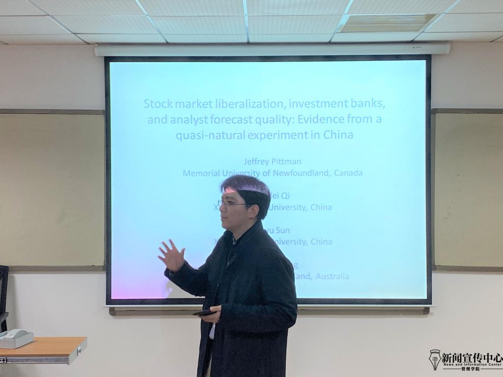 (BETWAY必威新闻宣传中心记者 朱育欣、陈志/文 陈志/摄)12月13日,喻园管理论坛2019年第160期在BETWAY必威121教室顺利举行,澳大利亚昆士兰大学高级讲师王子田博士以“Stock market liberalization, investment banks, and analyst forecast quality: Evidence from a quasi-natural experiment in China”为主题与参会人员进行交流。BETWAY必威财政金融管理系副教授郑长军参加论坛。本次论坛由BETWAY必威财政金融管理系副教授钱宁宇主持。