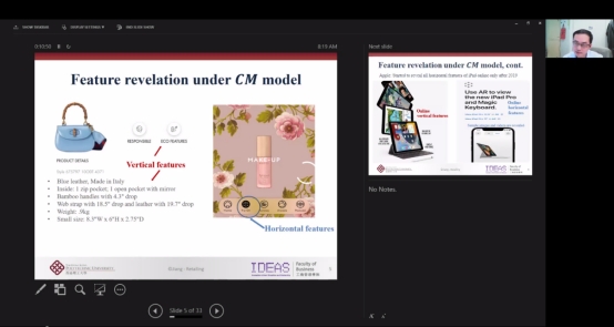 姜力教授以“When and How Should Retailers Manage Click-and-Mortar?”为主题,从零售业界实体店与线上网店共存带来的问题和挑战出发,分享了自己对不同环境下的产品,商家是否应该同时使用线上线下渠道、是否揭示产品的横向属性、是否提供预售、退货等问题的研究成果,揭示了现实中不同公司采用不同的零售策略以及整合网上渠道和实体商店来推广和销售产品不同方式的原因。
