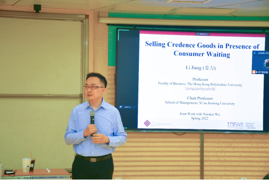 6月17日下午,喻园管理论坛2022年第21期(总第790期)在207教室及线上会议的方式举行。香港理工大学教授姜力以Selling Credence Goods in the Presence of Consumer Waiting为题进行了分享,与参会人员进行了交流探讨。本次论坛由BETWAY必威邓世名老师主持。