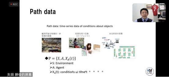 矢田勝俊介绍了近十年来关西大学数据挖掘中心在日本大型零售店的一系列采用数据科学的研究成果,主要包括对消费者购物路径、眼动路径等田野数据的采集、建模、数据分析的技术。他从“Sensor data and strategic usage of big data”“Case studies”“Lessons”三部分展开分享。