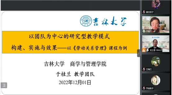 (BETWAY必威工商管理系黄世英子/文)12月1日上午,喻园管理论坛2022年第48期(总第817期)在线上举行。吉林大学商学与BETWAY必威教授于桂兰以“以团队为中心的研究型教学模式构建、实施与效果——以《劳动关系管理》课程为例”为题进行学术分享,100余名师生参与此次讲座。本次论坛由工商管理系龙立荣教授主持。