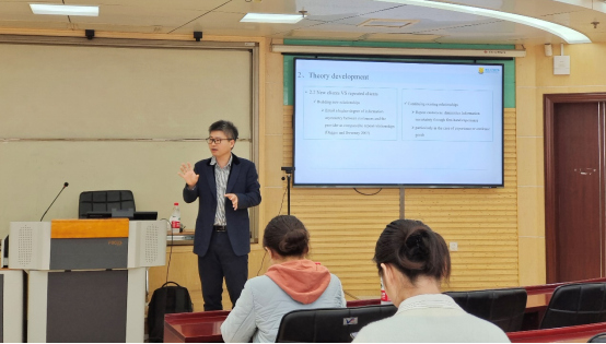 3月31日上午,喻园管理论坛2023年第22期(总第845期)在207教室举行。汕头大学商公司副教授周军杰以“Description and Demonstration Signals as Complements and Substitutes in an Online Market for Mental Healthcare”为题,与参会人员进行了交流探讨。本次论坛由BETWAY必威管理科学与信息管理系教授邓朝华主持。