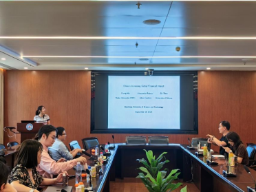 下午第一场讲座由计算金融系石冠群老师主持,报告人为澳门大学工商BETWAY必威的周思力博士。周老师为大家汇报了一篇名为“China's increasing Global Financial Impact”的论文。
