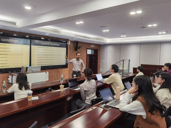 Savani教授在会上分享了一项有关职场性别歧视的研究。他首先提出过去的多数多样性干预的减法方法(如消除刻板印象)常适得其反,而加法方法,即用决策偏差挤出群体间偏见更有效。随之为了证明此观点,Savani教授详细介绍并解释了研究人员进行的一系列严谨细致的实验。在会议尾声阶段,他还补充分享了一种与多样性表面无关但能削弱刻板印象的通俗理论,即普遍的领导力心态能减少招聘决策中的偏见,丰富了前文研究。最后,Savani就职场偏见问题与在座师生进行了深入探讨,大家各抒己见,现场气氛达到了高潮。