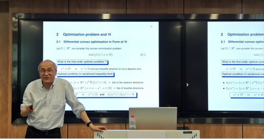 何炳生教授从华罗庚先生倡导的“统筹法与优选法”切入,强调数学方法在解决实际问题中的桥梁作用。他深入剖析了ADMM的核心思想——通过分解复杂问题为交替求解的简单子问题,结合变分不等式(VI)与邻近点算法(PPA),构建出高效稳定的优化框架。