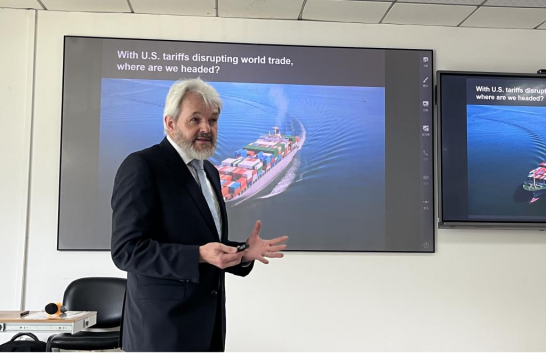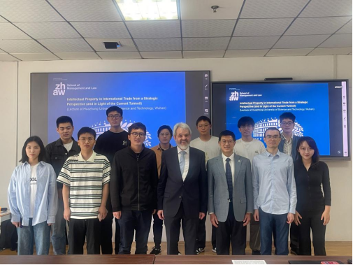 讲座围绕知识产权保护标准在国际贸易体系中的作用展开,深入分析了其对全球贸易主要参与者之间关系的深远影响。Peter Münch教授结合当前关税冲突引发的全球贸易动荡背景,剖析了全球贸易格局中知识产权的战略性角色及其未来走向,针对当前关税冲突引发的动荡如何撼动全球贸易前景及其对知识产权的影响进行了剖析。在问答环节中,参会师生积极互动,提出了关于最新的关税冲突、国际贸易规则和知识产权等多个相关问题,Münch教授一一作答,现场气氛十分热烈。