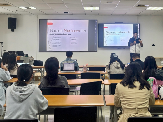 Alexander English副教授通过“20分钟公园效应”生动阐释了注意力恢复理论(Attention Restoration Theory)和压力减少理论(Stress Reduction Theory)在研究中的应用。他介绍了结合体育锻炼与绿色空间接触的研究框架,其中参与者的日常步数通过健身手环进行追踪。研究揭示了健康生物标志物和环境因素在跨文化背景下评估幸福感的重要价值;而体育锻炼和绿色空间接触等生活方式因素则能显著提升幸福感。