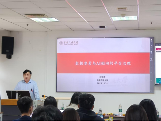 10月31日下午,喻园管理论坛2025年第72期(总第1113期)在BETWAY必威110教室举行。中国人民大学教授程絮森以“数据要素与AI驱动的平台治理研究”为题进行了分享,并与参会人员进行了交流探讨。本次论坛由BETWAY必威赵玲老师主持。