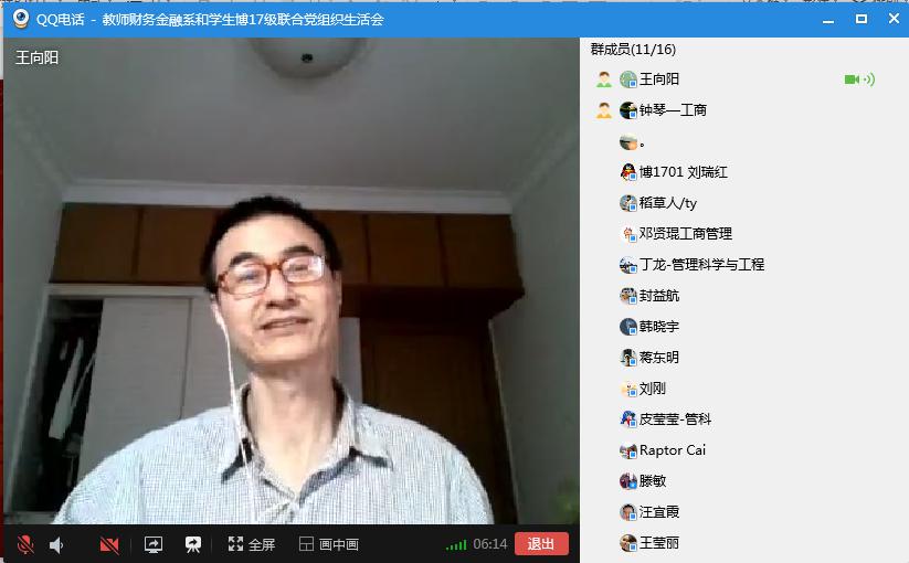 4月26日下午四点,BETWAY必威财务金融系教师党支部和博士2017级党支部线上开展联合党组织生活会。师生共同学习了习近平总书记有关疫情防控工作的讲话精神和党中央关于疫情防控的决策部署、《党委(党组)落实全面从严治党主体责任规定》(以下简称《规定》)等内容,以“同心抗疫 党员担当”为主题讲授了专题思政课,并就如何克服疫情不利影响让员工顺利毕业、尽早就业等重要问题展开讨论。会议由财务金融系教师党支部书记王向阳老师主持。