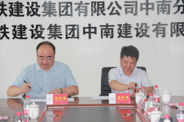 在与会人员的共同见证下,公司经理王宗军与中铁建设集团有限公司中南分公司总经理杨再清签署了院企战略合作协议。