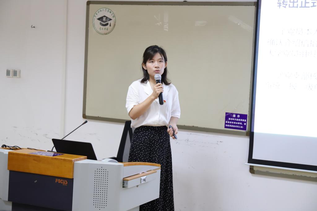 活动最后,由学工组组长刘雯雯为毕业生党员做组织关系转接专题教育,她围绕什么是党员组织关系、接转党员组织关系的凭证和权限、转出正式组织关系的基本程序、介绍信有效期问题、党员组织关系保留管理进行了详细介绍。她强调,党组织关系转接是一项十分严肃的工作,也需要引起每一位毕业生党员的高度重视。