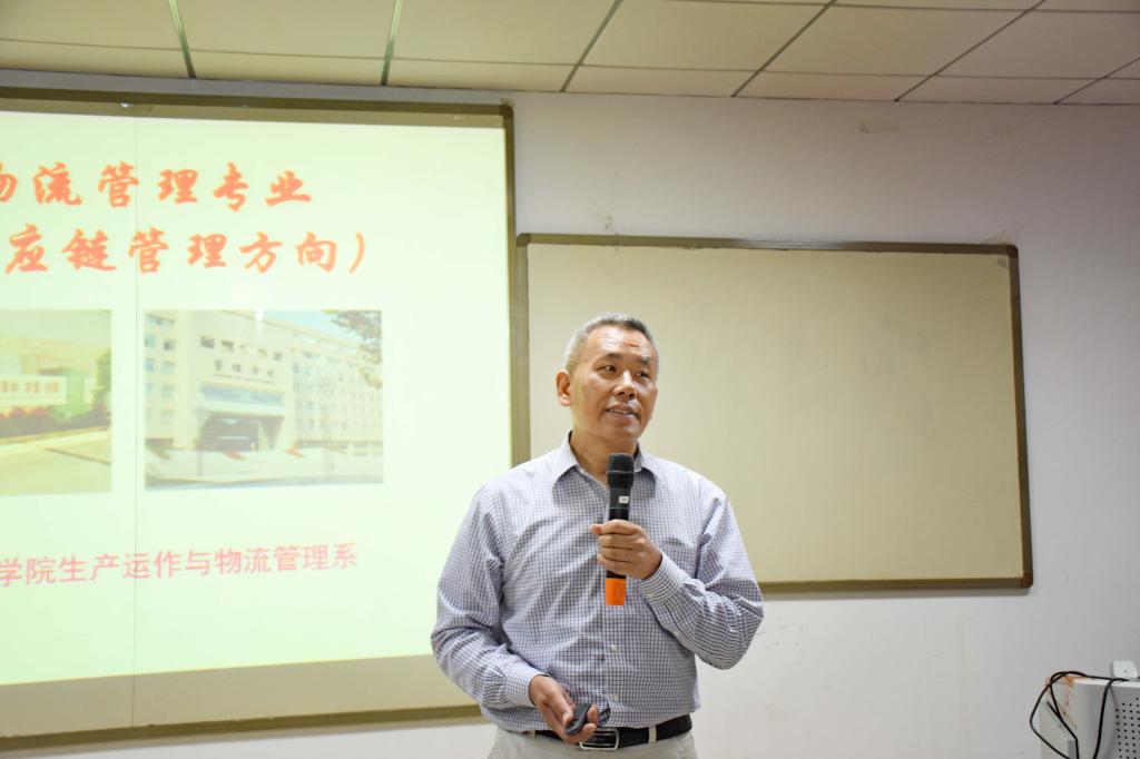 首先,刘志学引用习近平总书记的讲话强调了物流管理专业的社会需求,并对BETWAY必威物流管理专业的发展沿革进行了介绍。他指出,BETWAY必威物流管理专业的开办创造了中国物流教育史的多个第一。紧接着,他从优秀毕业生,团队团队,科研项目及成果,全国精品教材编写,学术论文发表等方面向同学们展示了物流管理专业的深厚底蕴与实力。在培养模式方面,刘志学表示要体现专业特色与优势,采取交叉复合型培养模式,使教学创新化、国际化,让员工学会用“脑”做物流。